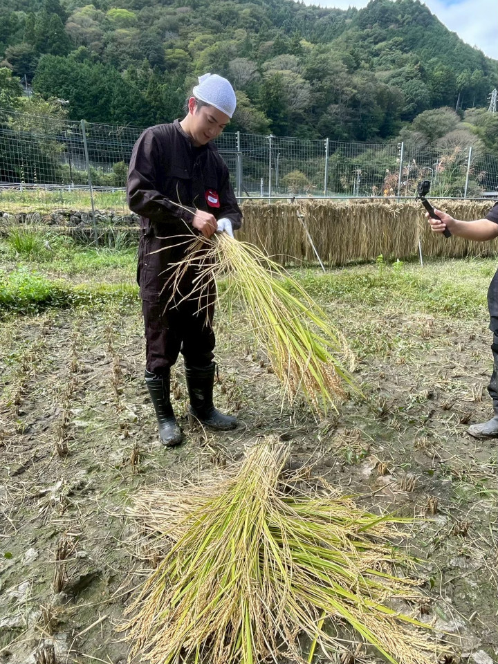 2025年10月7日(火)にアミューズ所属のアーティストである甲斐翔真さん(https://www.amuse.co.jp/artist/A8774/index.html)が山梨県身延町相又の田んぼできずなづくりの田んぼで稲刈り体験を行いました!
