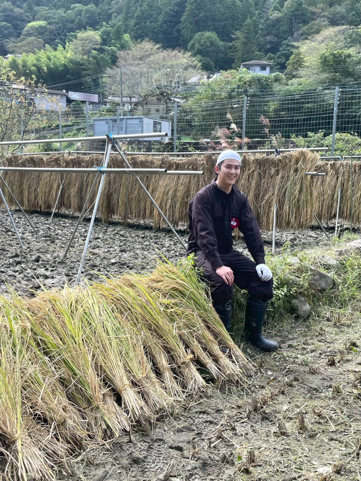甲斐翔真さんはもちろんマネージャーさんやメイクさんも農作業を楽しんでくれていたようです。田んぼは非日常なので、自然の中で汗をかきながら作業をしているとストレス発散になるんですよね!(特に稲刈り)